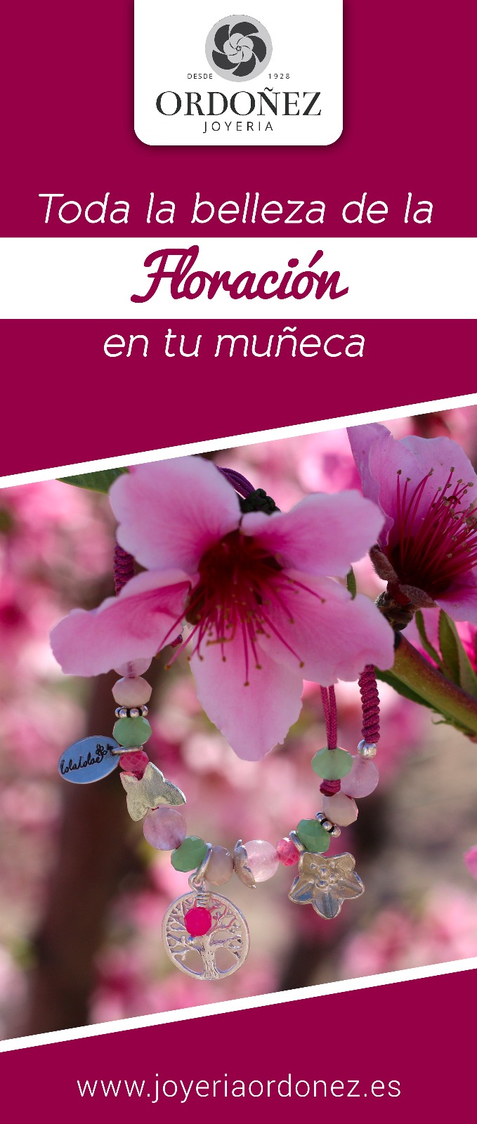 La Floración de Cieza es ya algo más que un fenómeno de la Naturaleza, es fuente de inspiración y creatividad, y en LolaLoae (la marca propia de Joyería Ordóñez), han querido hacerle un homenaje en forma de pulsera, con los colores propios de los campos de Cieza en flor y con elementos que le dan vida.
